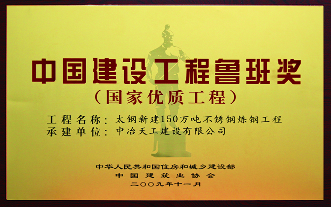 国家优质工程奖-太钢新建150万吨不锈钢炼钢工程