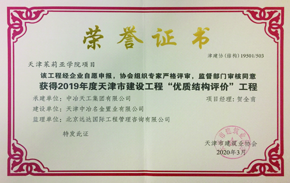 2019年度天津市建设工程“优质结构评价”工程-天津茱莉亚学院项目