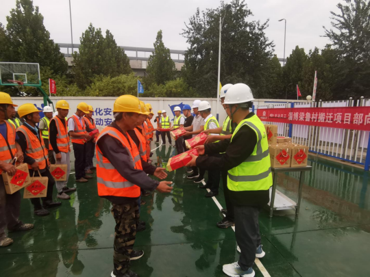 在中秋、國(guó)慶“雙節(jié)”來(lái)臨之際,中冶天工華南公司淄博經(jīng)濟(jì)開(kāi)發(fā)區(qū)梁魯村搬遷項(xiàng)目全體管理人員及建筑工人們?nèi)跃耧枬M(mǎn)、干勁十足地堅(jiān)守在建設(shè)工地上,為了讓這些來(lái)自他鄉(xiāng)的城市建設(shè)者們感受到節(jié)日的溫馨,9月28日,項(xiàng)目部聯(lián)合建設(shè)、監(jiān)理單位向奮戰(zhàn)在一線(xiàn)的工友送上慰問(wèn)。