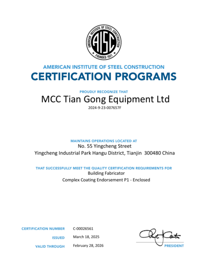 AISC認(rèn)證是美國鋼結(jié)構(gòu)協(xié)會針對鋼結(jié)構(gòu)制造工廠的質(zhì)量管理體系認(rèn)證,旨在確保企業(yè)具備符合北美市場要求的技術(shù)能力和管理規(guī)范。審核組先后審查了材料庫及廠區(qū)的各工位,并對材料管理、材料追溯、焊接工藝油漆工藝等生產(chǎn)過程控制進(jìn)行了現(xiàn)場審核,其中對現(xiàn)場構(gòu)件的追溯、油漆工理論及操作、焊工理論及操作、焊接預(yù)熱記錄、焊縫外觀及尺寸等進(jìn)行了隨機(jī)的抽樣檢查,抽樣結(jié)果完全符合AISC程序文件和工藝要求。隨后,審核員對公司的質(zhì)量手冊、程序文件以及過程控制文件資料進(jìn)行了認(rèn)真審核。