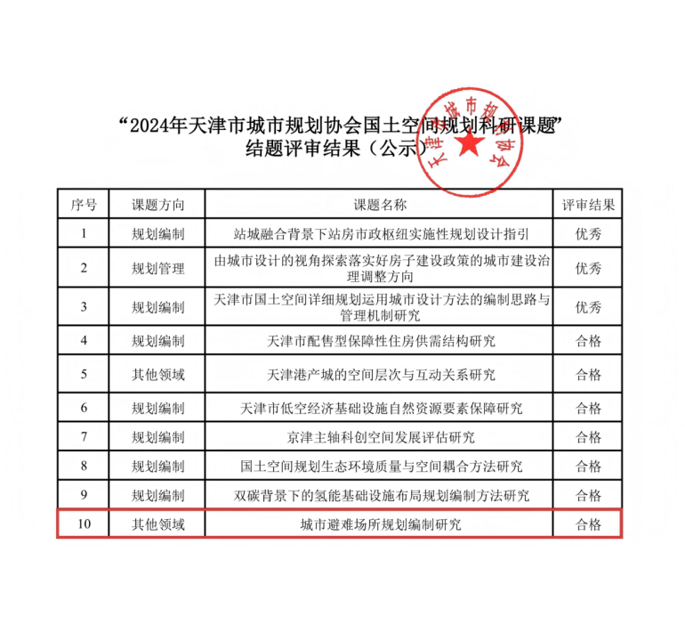 近日,由工程技術(shù)總院牽頭研究的“城市避難場(chǎng)所規(guī)劃編制研究”課題,憑借扎實(shí)的研究基礎(chǔ)、創(chuàng)新的成果體系及突出的實(shí)踐價(jià)值,在天津市城市規(guī)劃協(xié)會(huì)組織的專家評(píng)審會(huì)議上獲得一致認(rèn)可,成功通過(guò)結(jié)題評(píng)審。