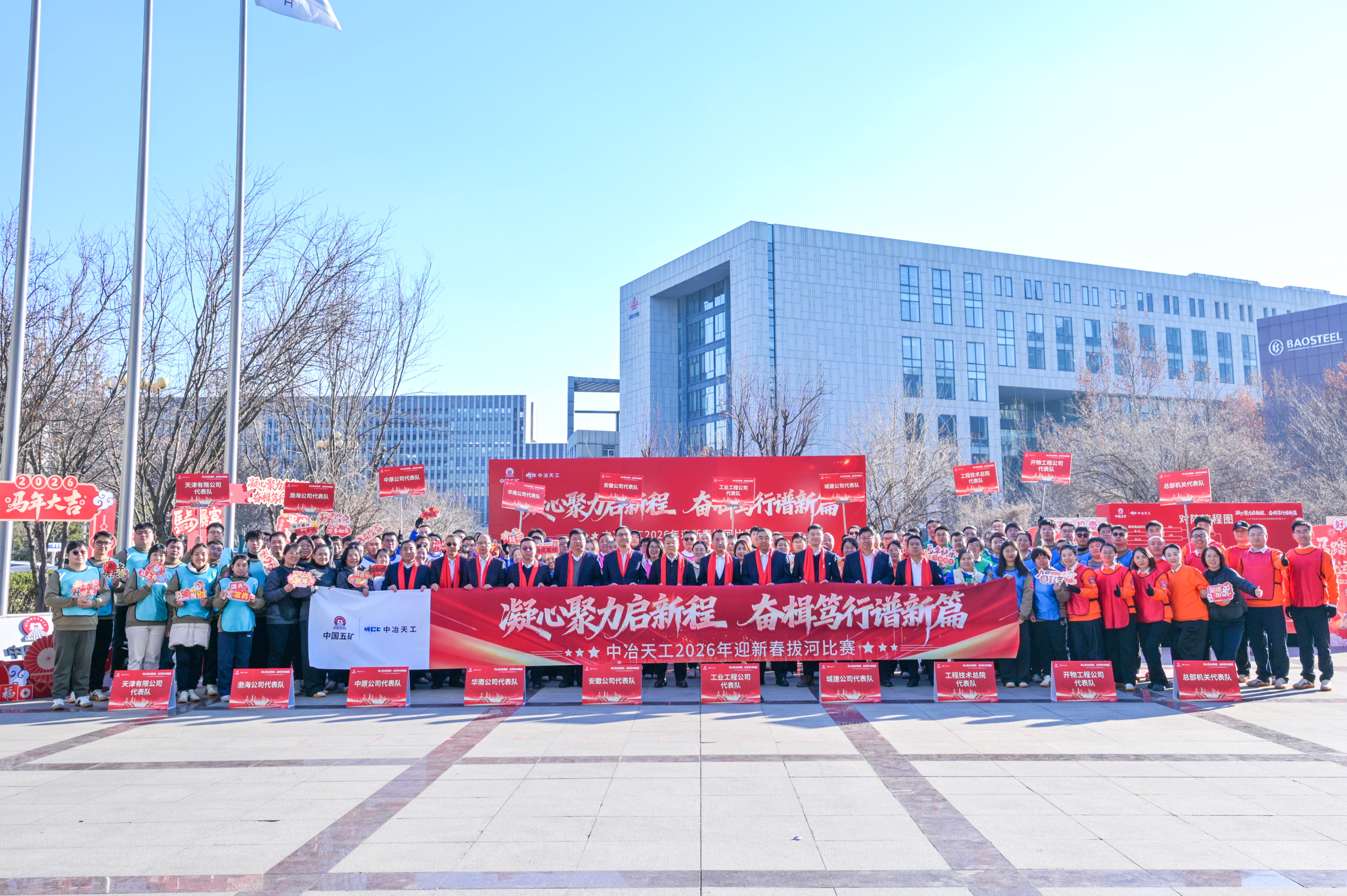 新年伊始,為增強企業(yè)凝聚力和向心力,激發(fā)干事創(chuàng)業(yè)熱情,展現(xiàn)員工奮發(fā)向上的精神風貌,1月5日,中冶天工組織開展“凝心聚力啟新程,奮楫篤行譜新篇”2026年迎新春拔河比賽。公司黨委書記、董事長高文華出席活動并講話,總經(jīng)理、黨委副書記奚會祥,黨委副書記、工會主席文科及其他在津領(lǐng)導班子成員、專務經(jīng)理、非班子高管出席活動,來自二級單位和總部機關(guān)的10支參賽隊伍共計110余人參加活動。