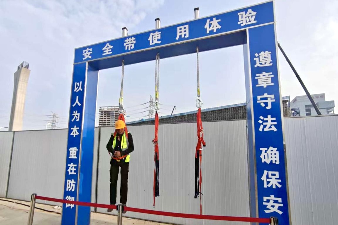 獲批“蘇安碼”培訓資質后,項目采用“理論授課+警示教育視頻+安全體驗區實操”三位一體模式,迅速組織管理人員、一線施工班組及特種作業人員開展專題培訓,參訓人員全程實行刷身份證實名進場、人工簽到登記制度,以精準溯源杜絕代培代訓亂象。理論授課環節聚焦建筑施工安全法律法規、現場作業安全規范、隱患排查要點及蘇安碼注冊使用流程;警示教育環節通過播放工地安全事故典型案例視頻,直觀剖析違規操作危害,為參訓人員敲響安全警鐘;實操體驗環節依托專業安全體驗區,覆蓋高處墜落體驗、綜合用電體驗、安全防護用品展示、滅火器實操演示、安全帽撞擊體驗、安全帶使用體驗六大核心模塊,讓參訓人員從被動聽理論轉為沉浸式親身體驗,直觀感受違規作業帶來的安全風險,熟練掌握防護用品正確使用方法和應急處置技能,全方位補齊全員安全知識短板。